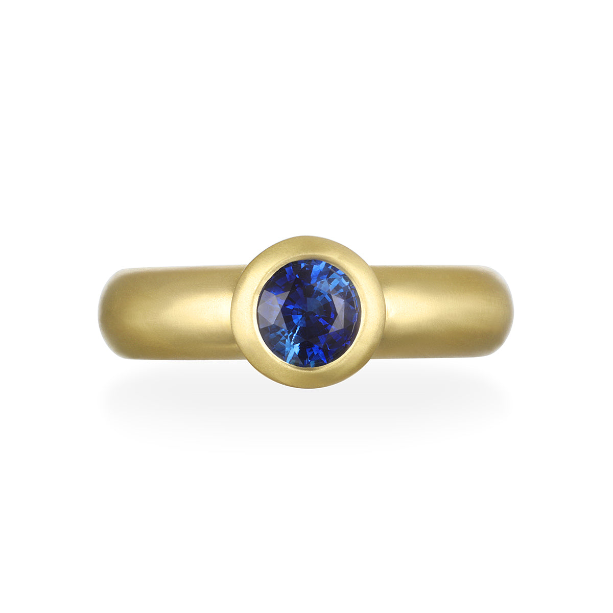 18k Gold Ceylon Blue Sapphire Bezel Ring