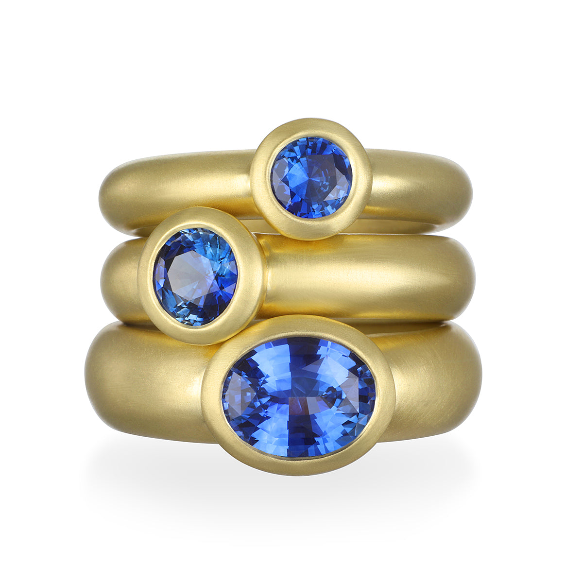 Pictured with 18k gold .62 ct sapphire ring, sold separately