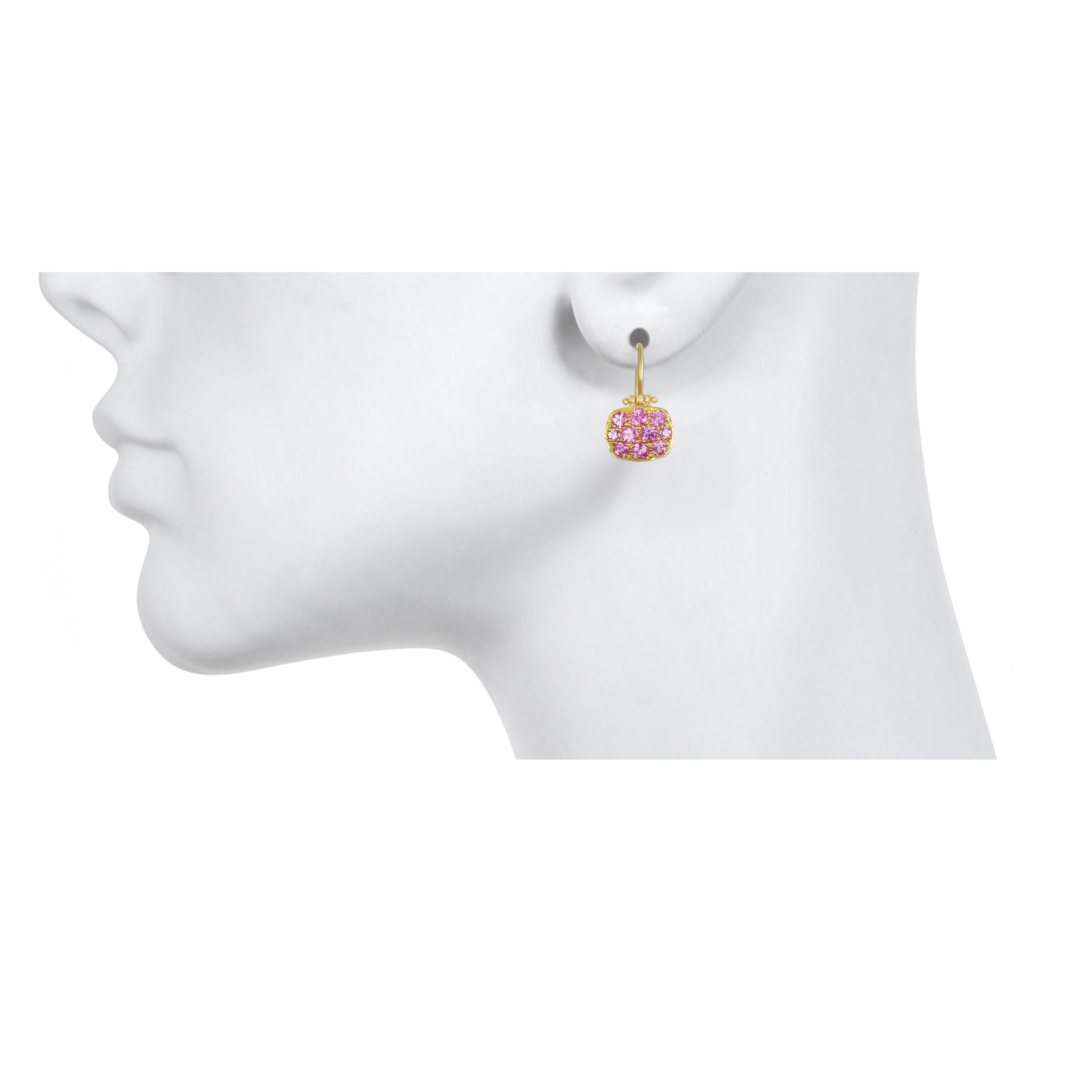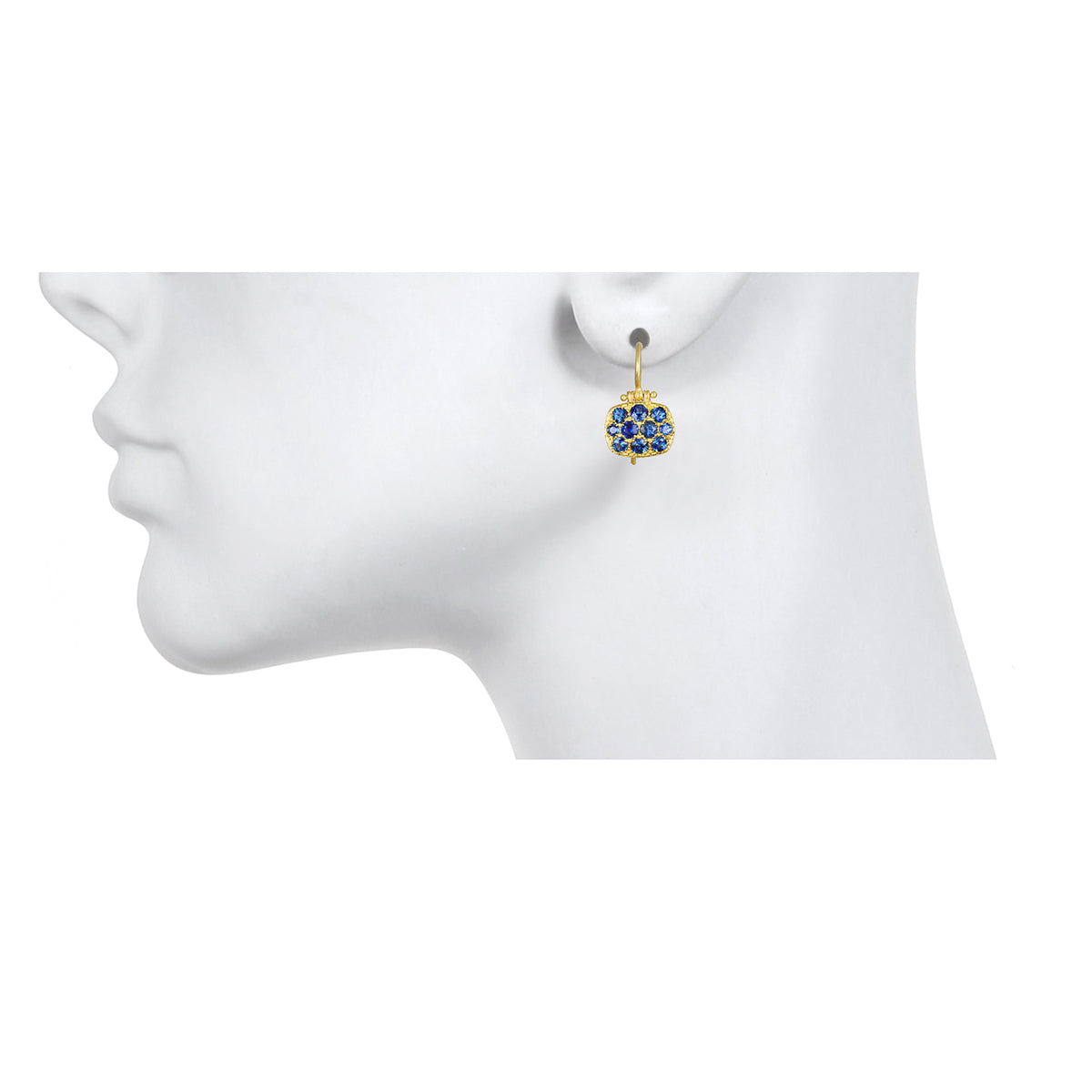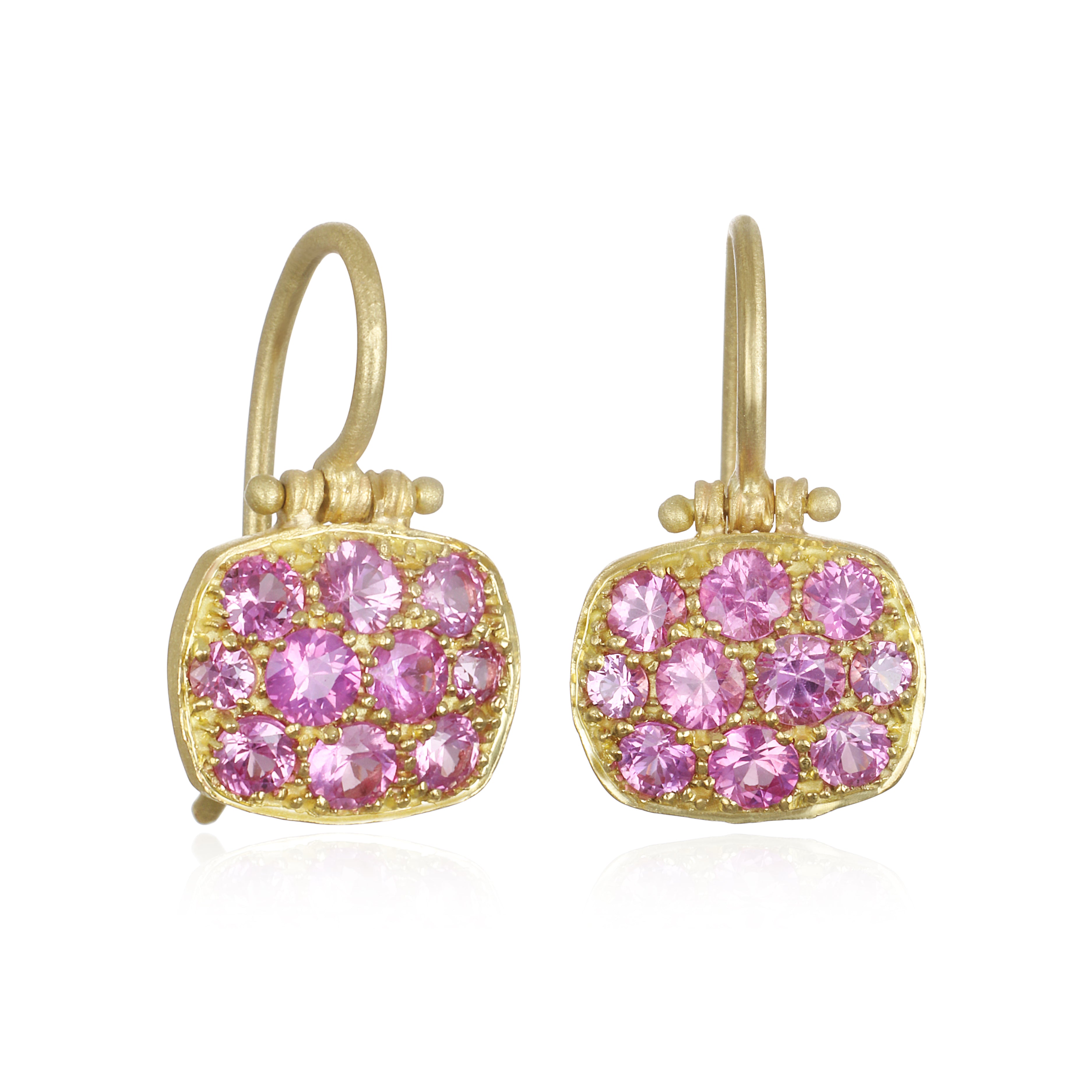 18k gold sapphire pave chiclet earrings with hinged ear wires.
