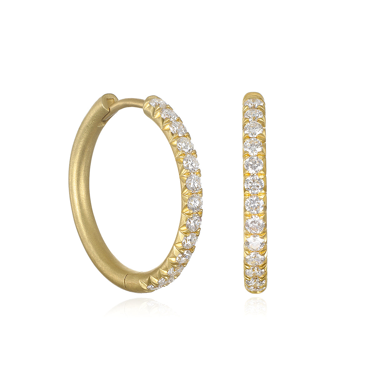 18 Karat Gold Micro Pave Diamond Hinged Hoops - Large