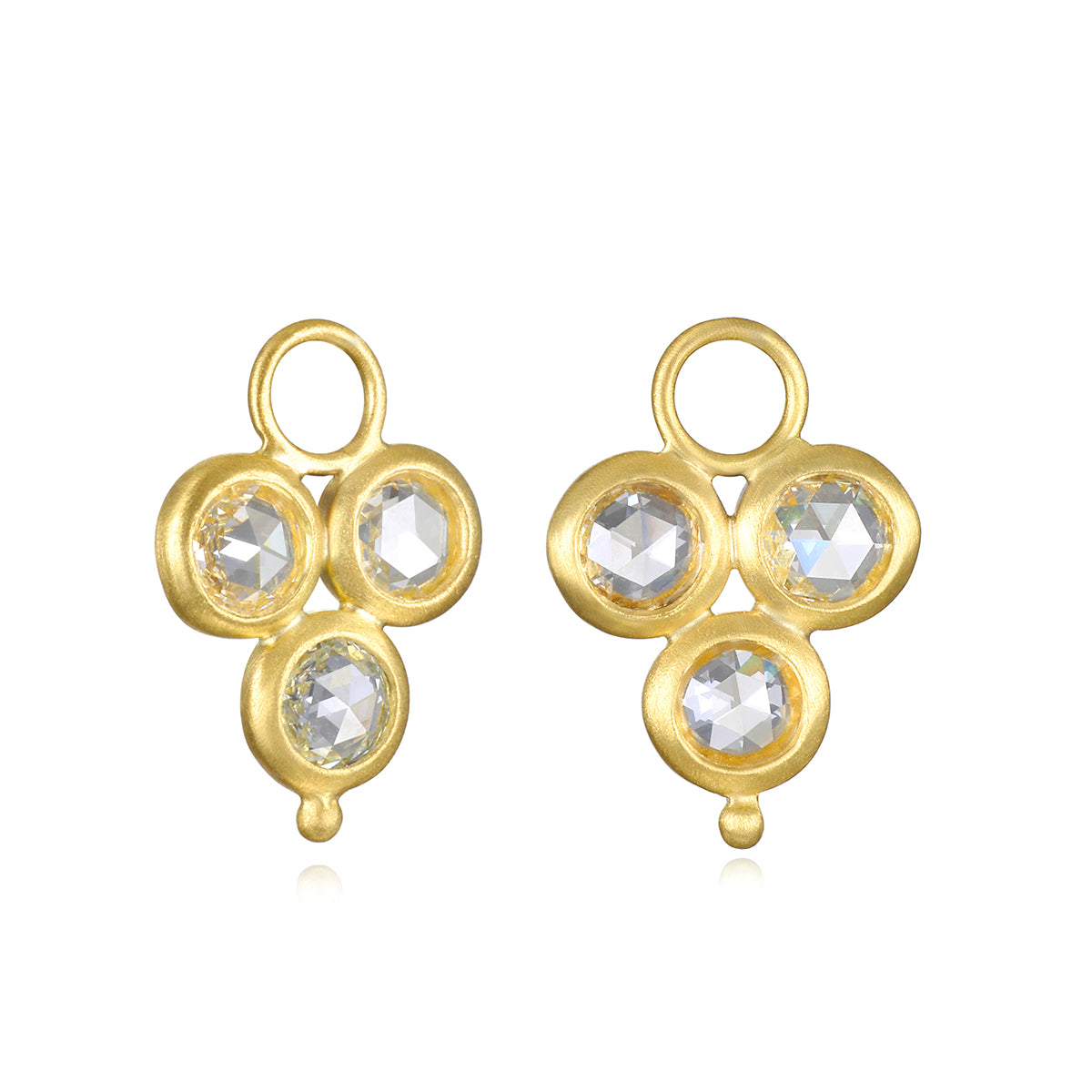 18k Gold Rose Cut Triple Diamond Drops for Hoops