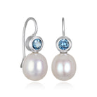 White Gold Aquamarine and Freshwater Pearl Drop Earrings