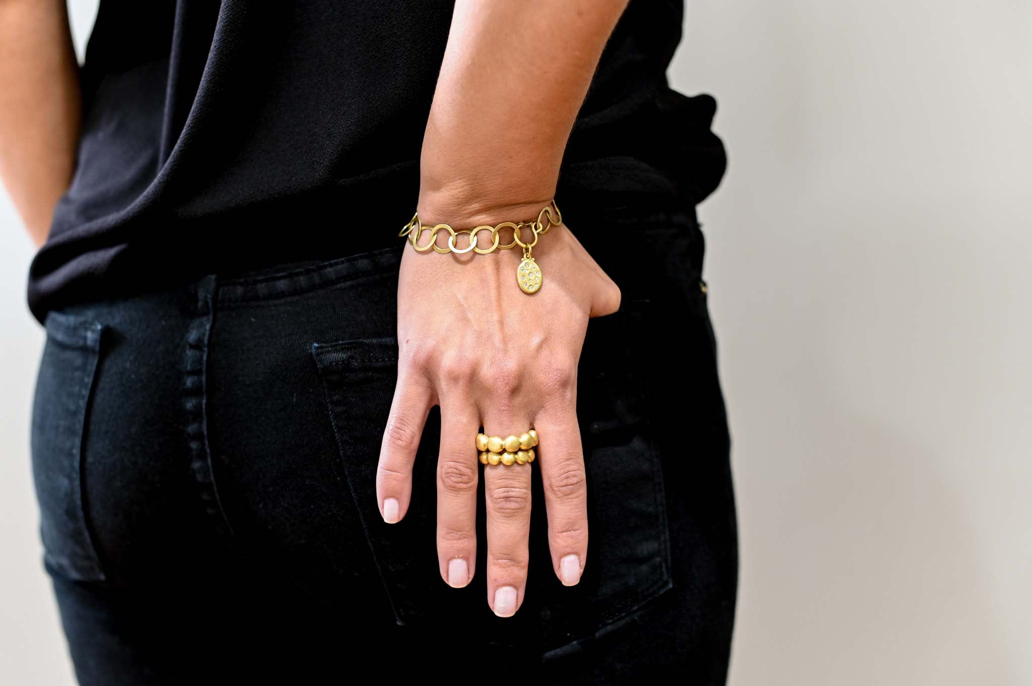 Pictured with Diamond Granulation Ring and 18k Round Chain Link Bracelet, sold separately