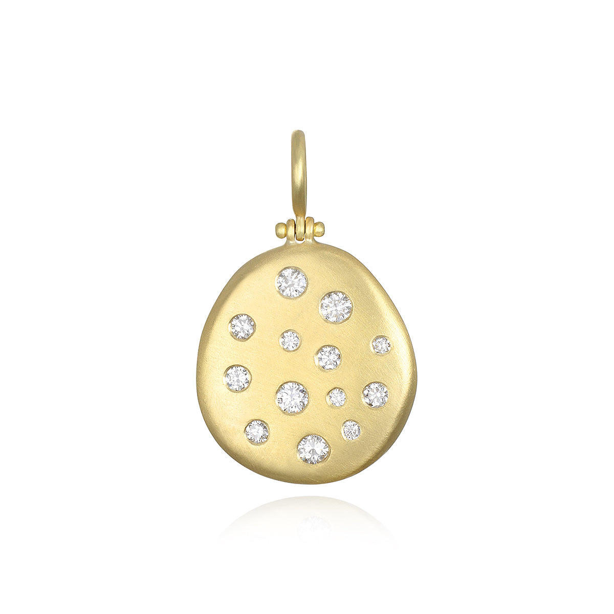 18k Gold Diamond Dog Tag Pendant with Hinged Bail - Medium