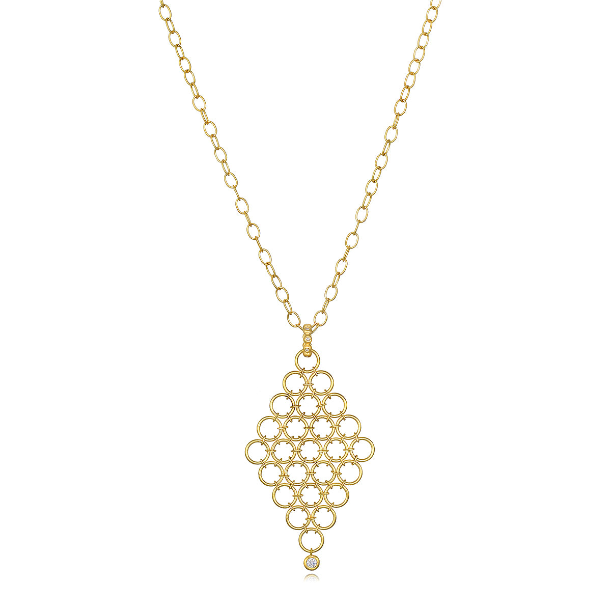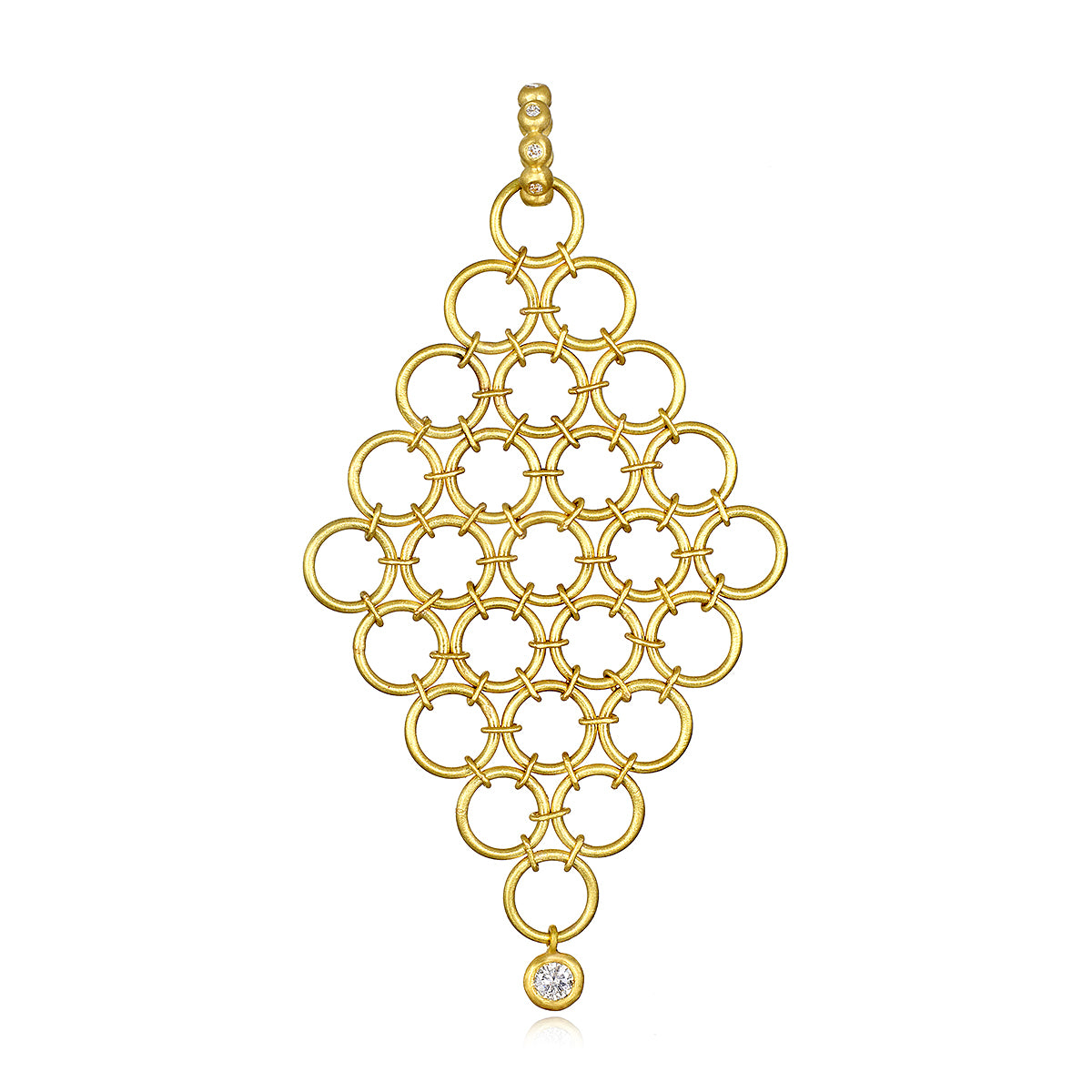 18k Gold Handmade Mesh Pendant With Diamond Granulation Bail and Drop
