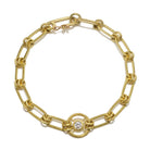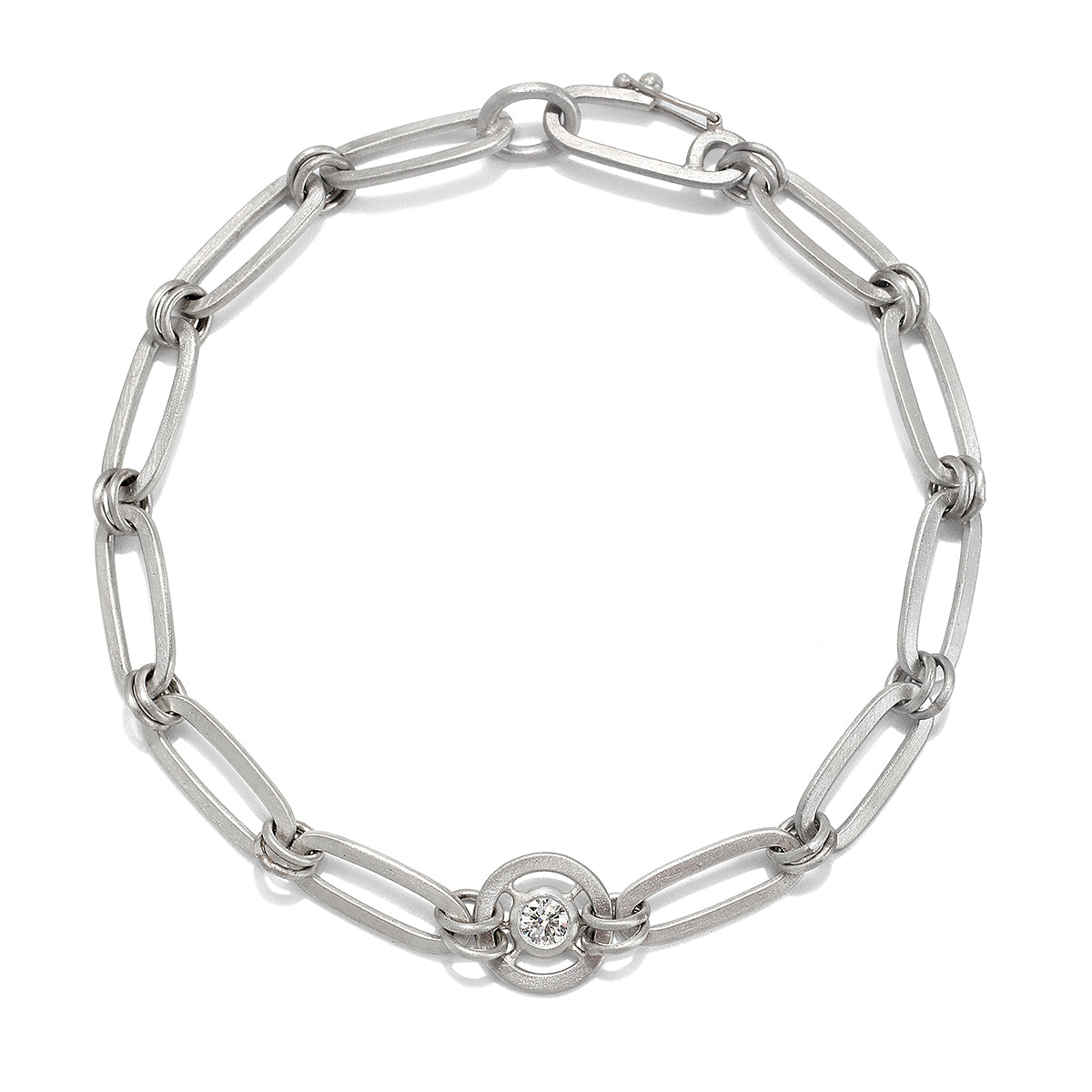 Platinum Paperclip Link Bracelet with Diamond Wheel