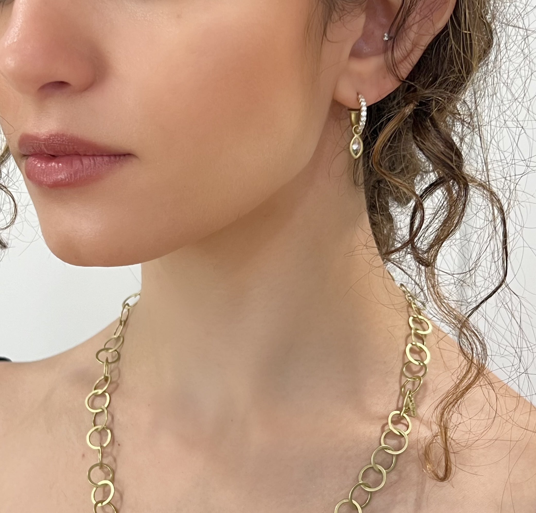 Shown on 18k Gold Signature Hoops, Signature Wire Hoops, Diamond Pave Hoops,