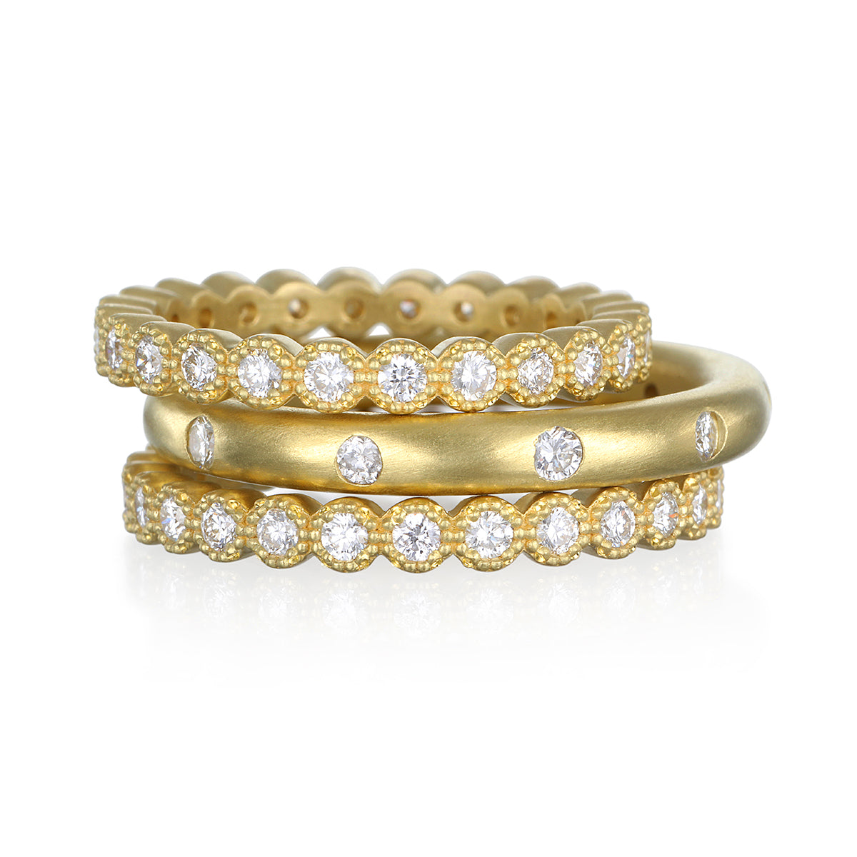 18k Gold Diamond Eternity Band with Milgrain Edge