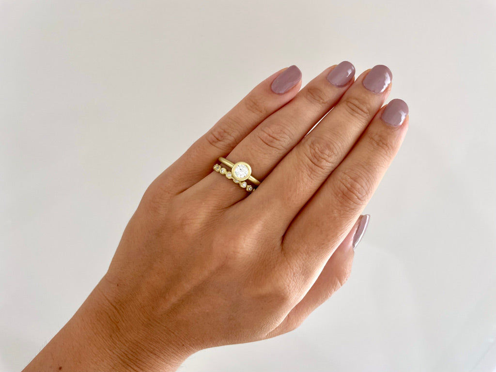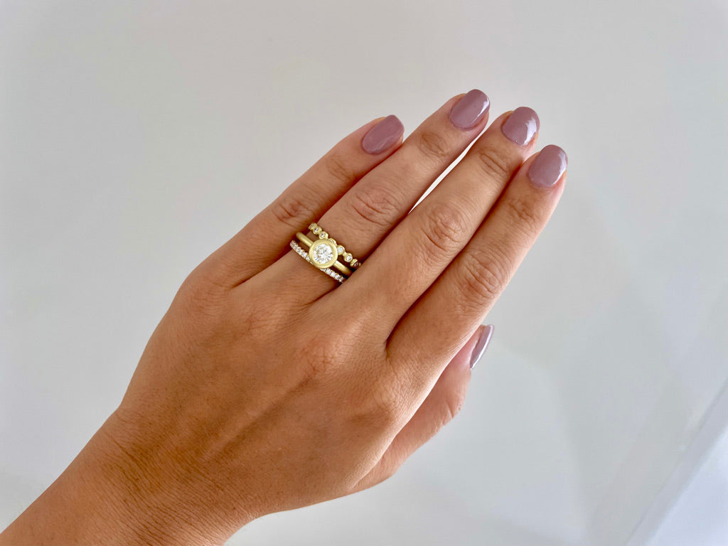 18k gold Diamond small granulation bead ring