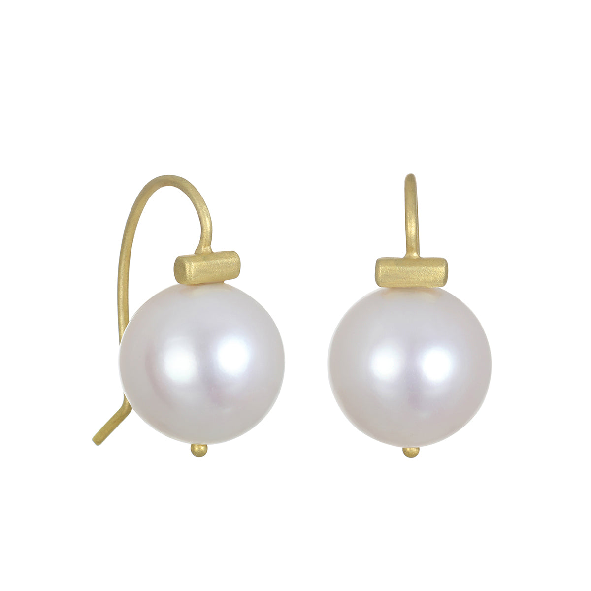 18 Karat Gold Freshwater Pearl Bar Earrings