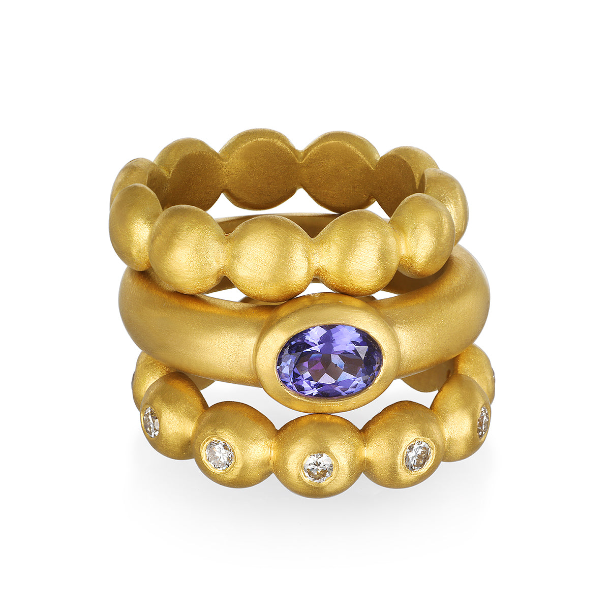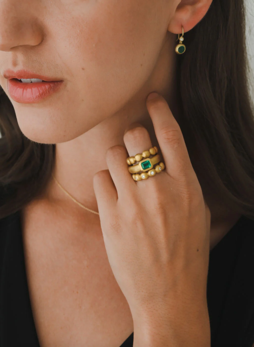 Pictured with 22k Granulation Ring, 18k Emerald Ring, and Tanzanite Ring, sold separately