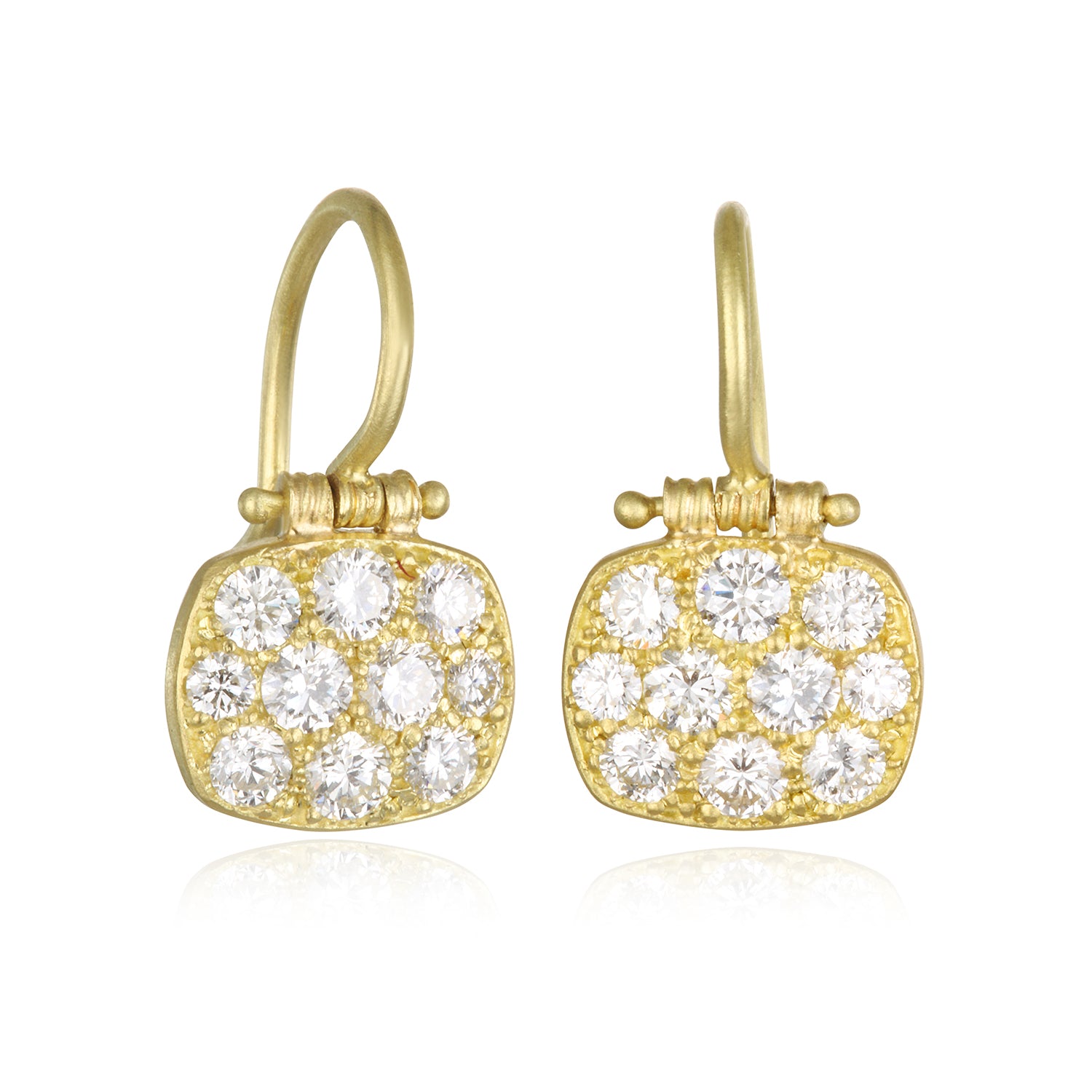 18 Karat Gold Micro Pave Diamond Chiclet Earrings