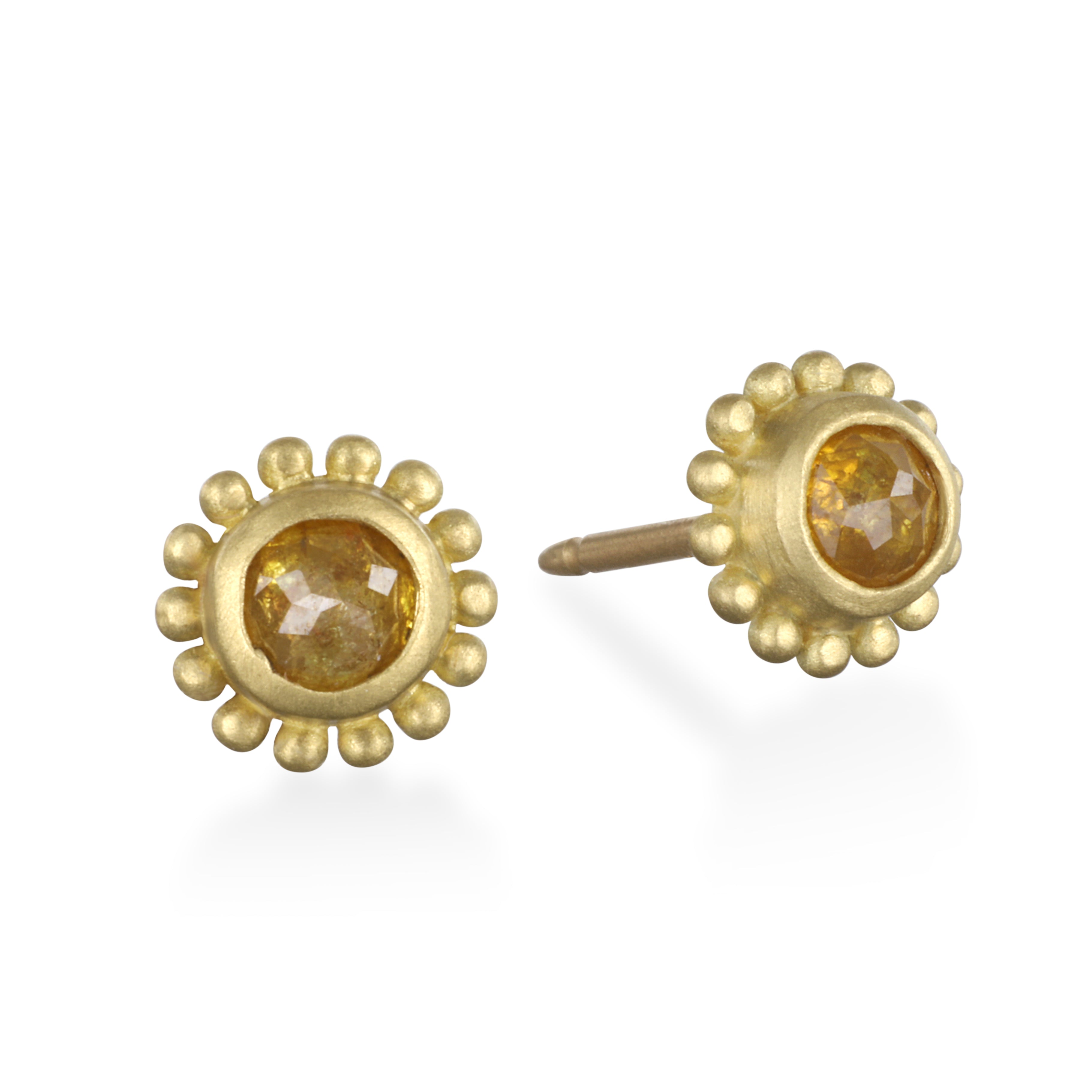 18k Gold Milky Diamond Stud Earrings with Granulation Border