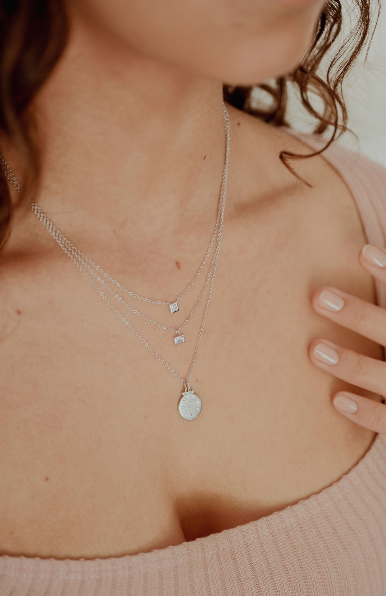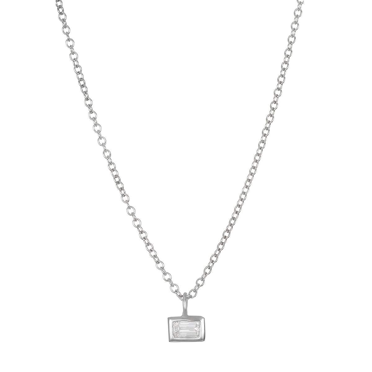 18 Karat White Gold Diamond Baguette Drop Necklace