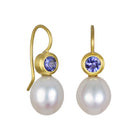 18 Karat Gold Tanzanite and Freshwater Pearl Drop Earrings