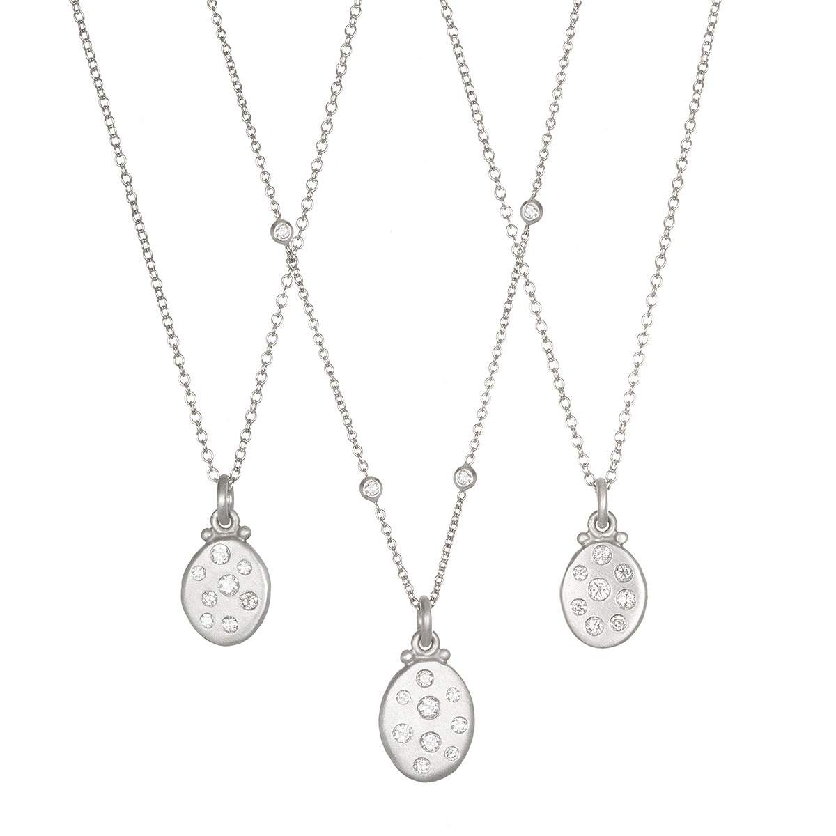 Pictured on 18k White Gold Chains, sold separately: Diamond Station Necklace and