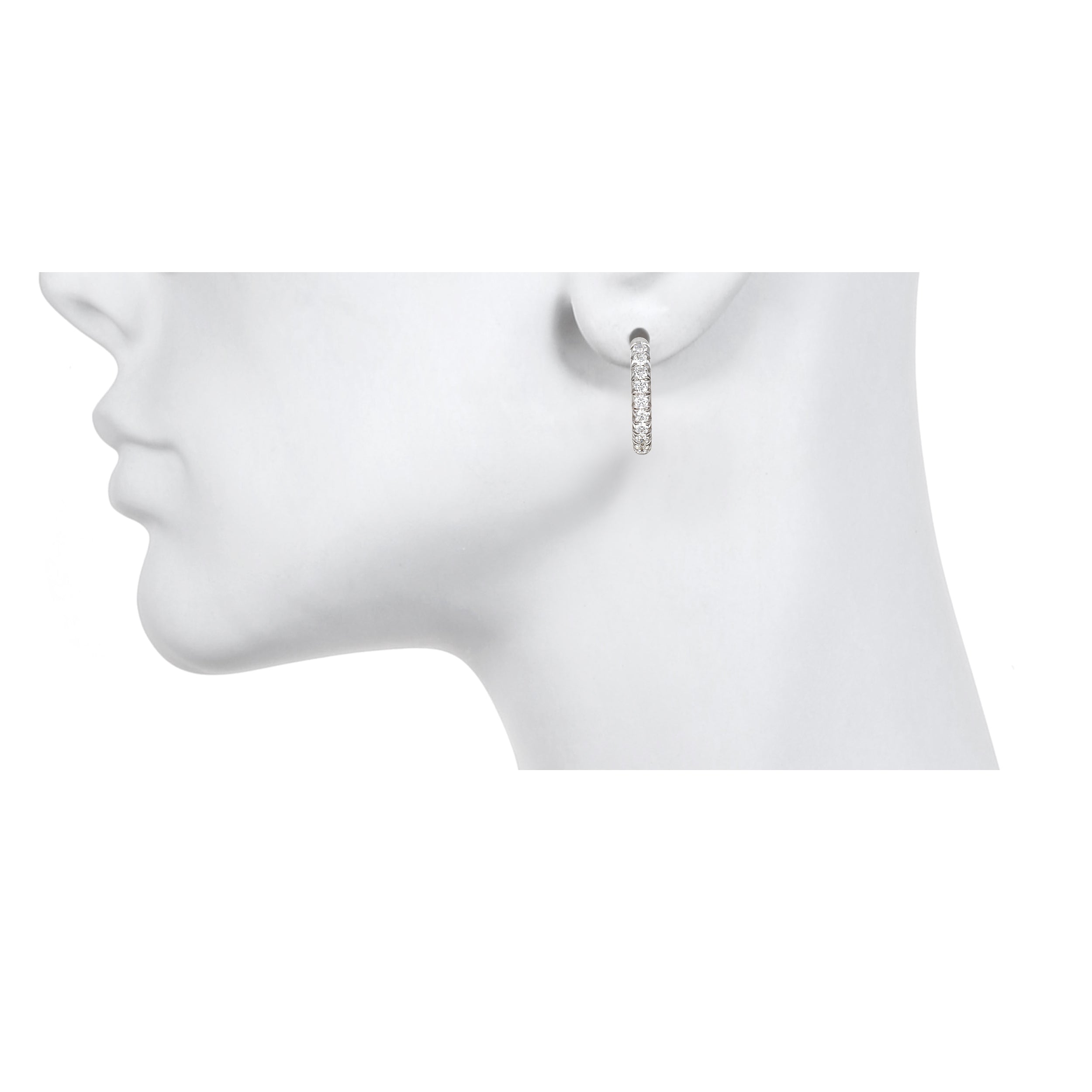 Platinum Micro Pave Diamond Hinged Hoops - Medium