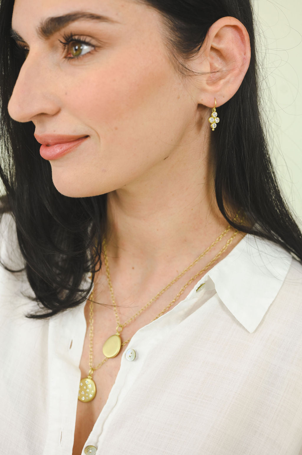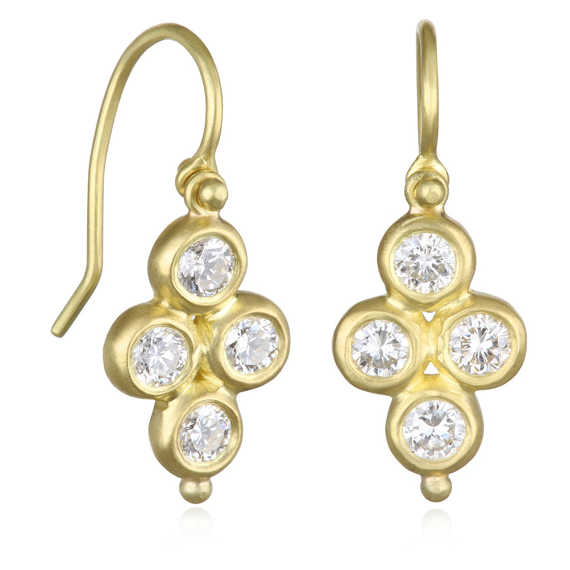18k gold brilliant cut Diamond quad drop earrings with granulation bead drop detail