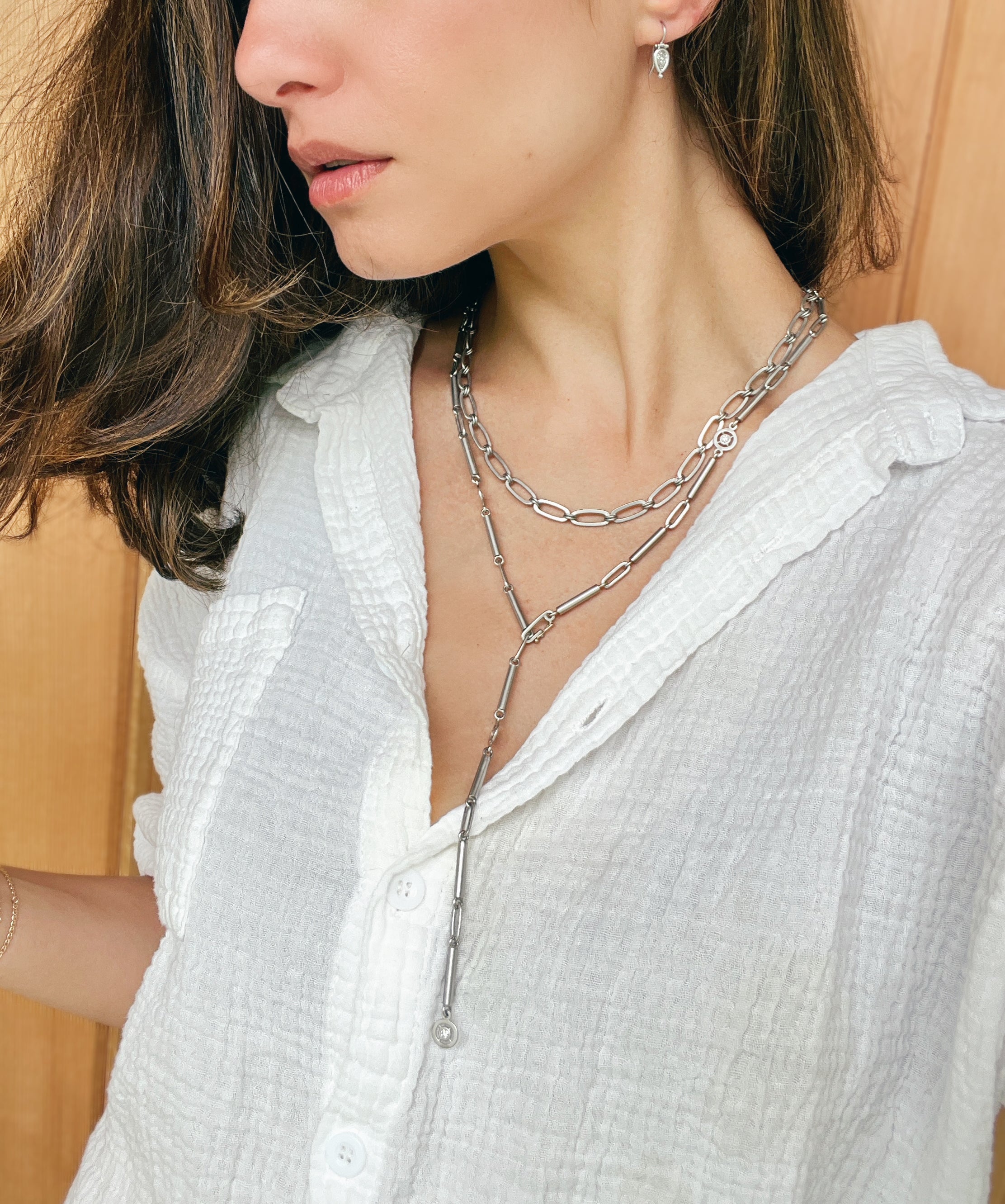 Platinum Planished Paperclip Round Link Chain