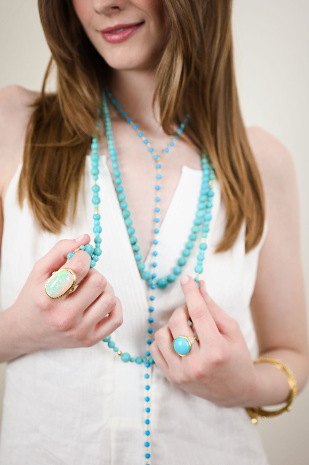 18 Karat Gold Arizona Sleeping Beauty Turquoise Bead Necklace