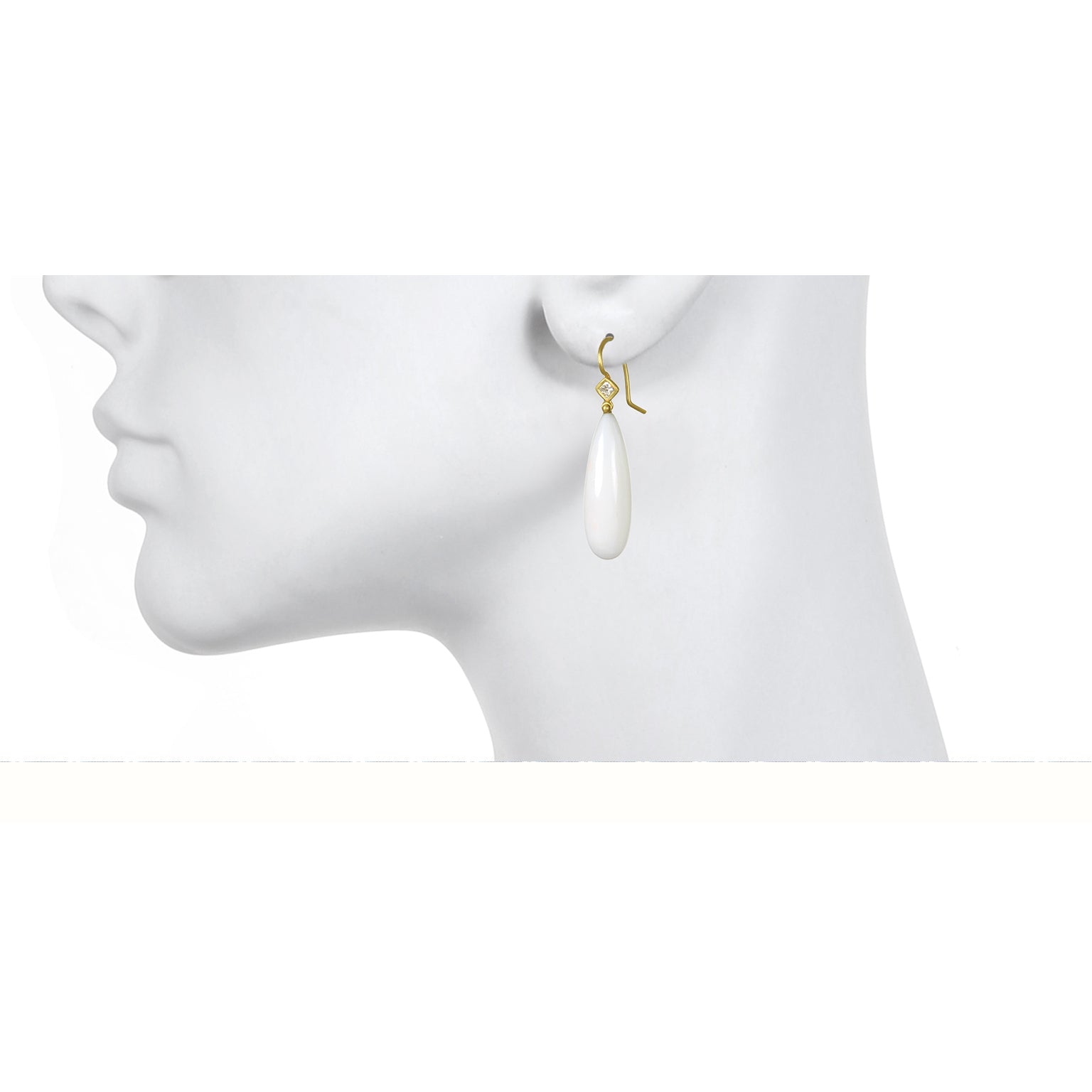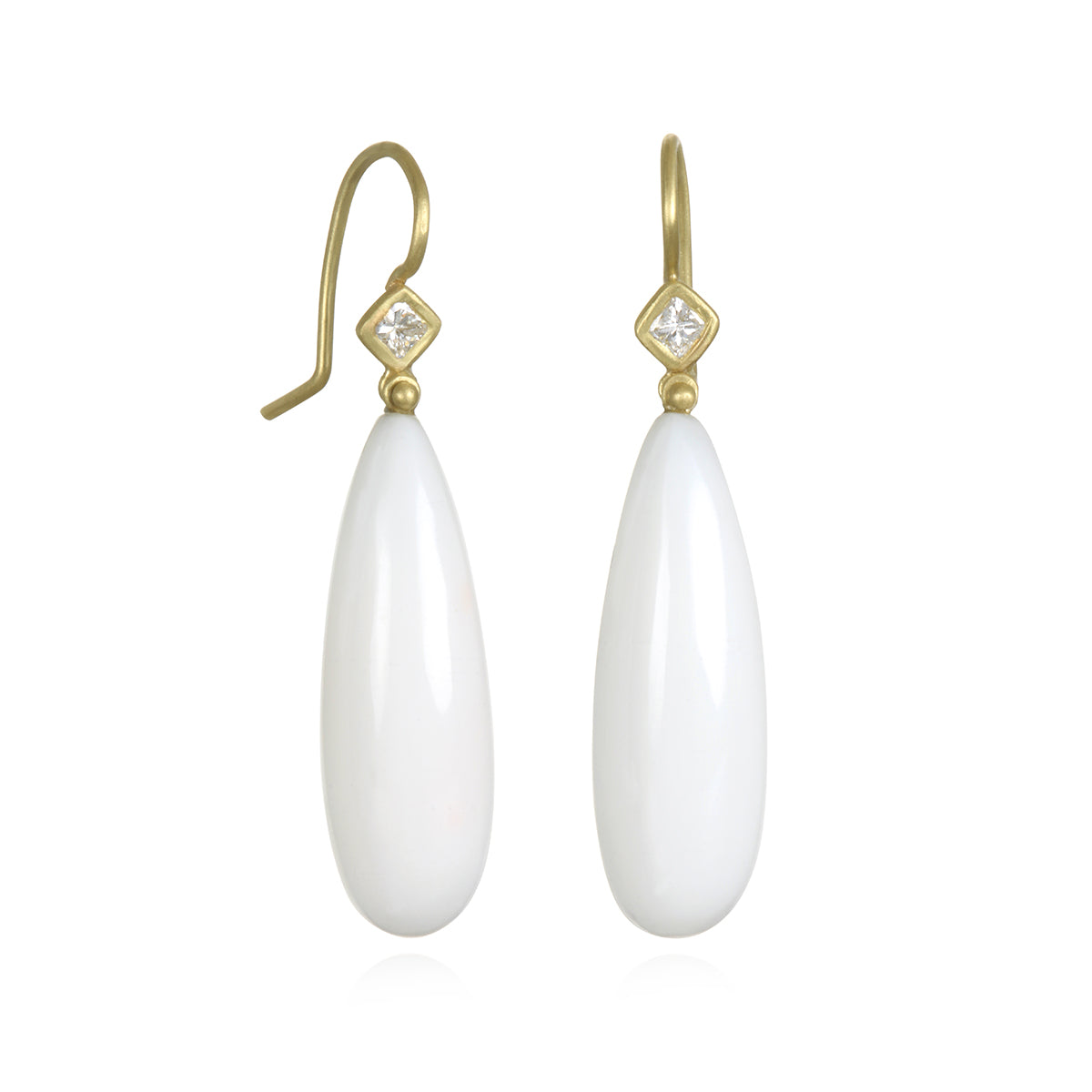 18k Gold Blush-White Coral Earrings with Princess Cut Diamonds