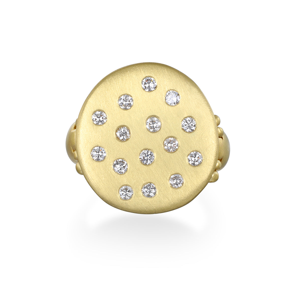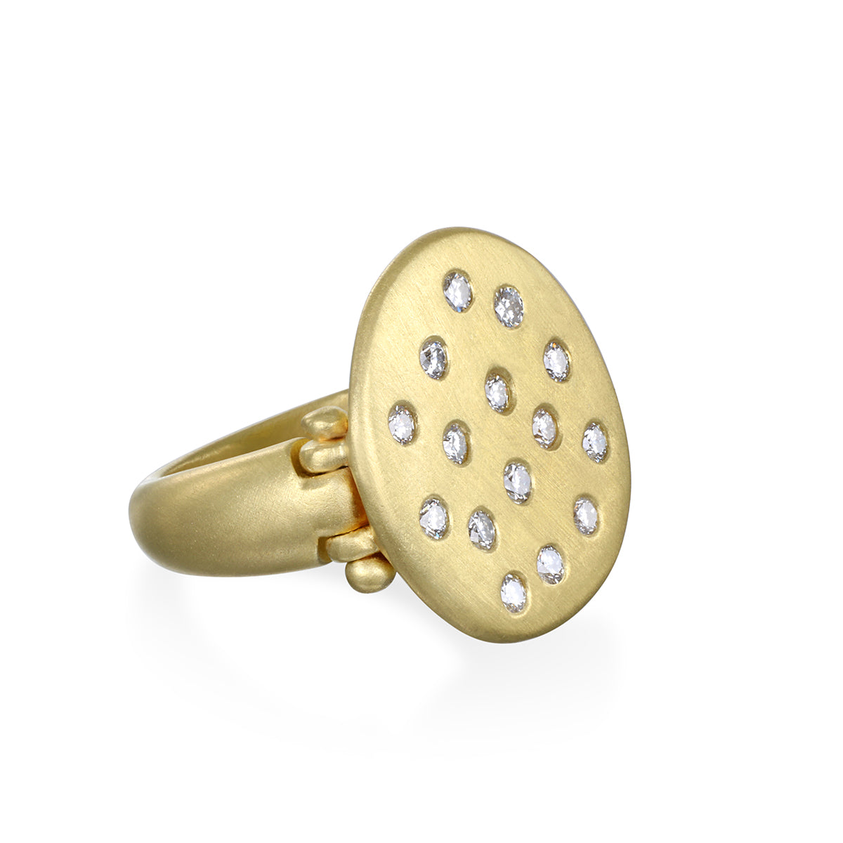 18 Karat Gold Burnished Diamond Hinged Signet Ring