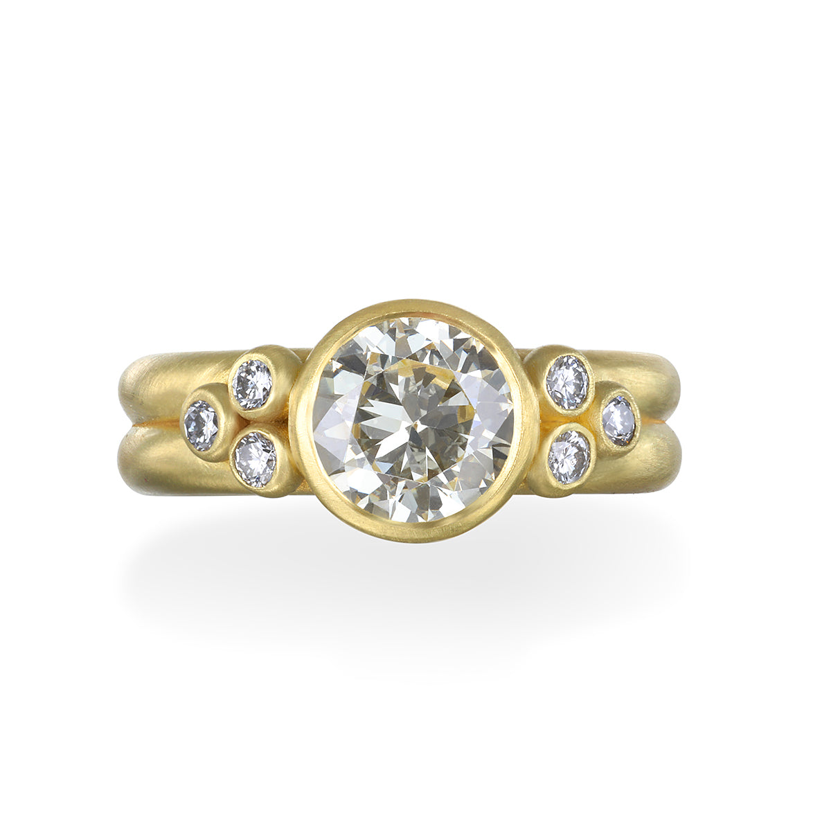 18k Round Brilliant Cut Diamond Ring Double Shank with Triple Diamond Granulation Detail