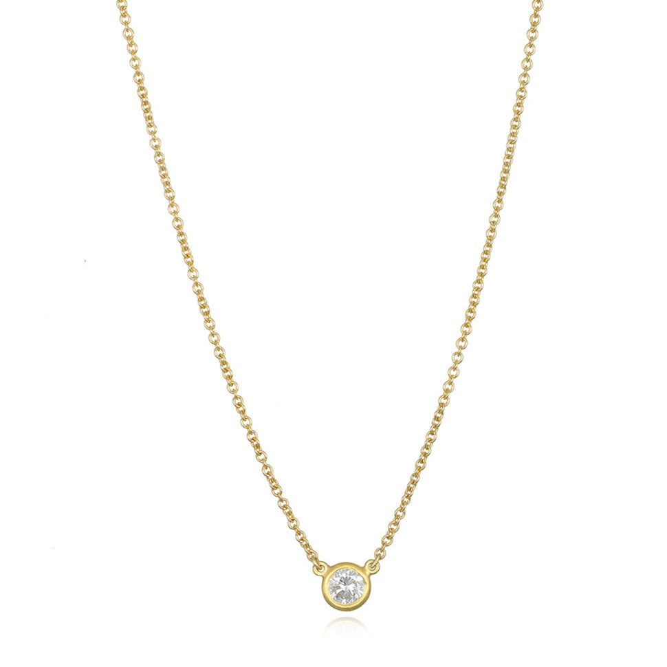 18k Gold Round Brilliant Cut Diamond Solitaire Necklace
