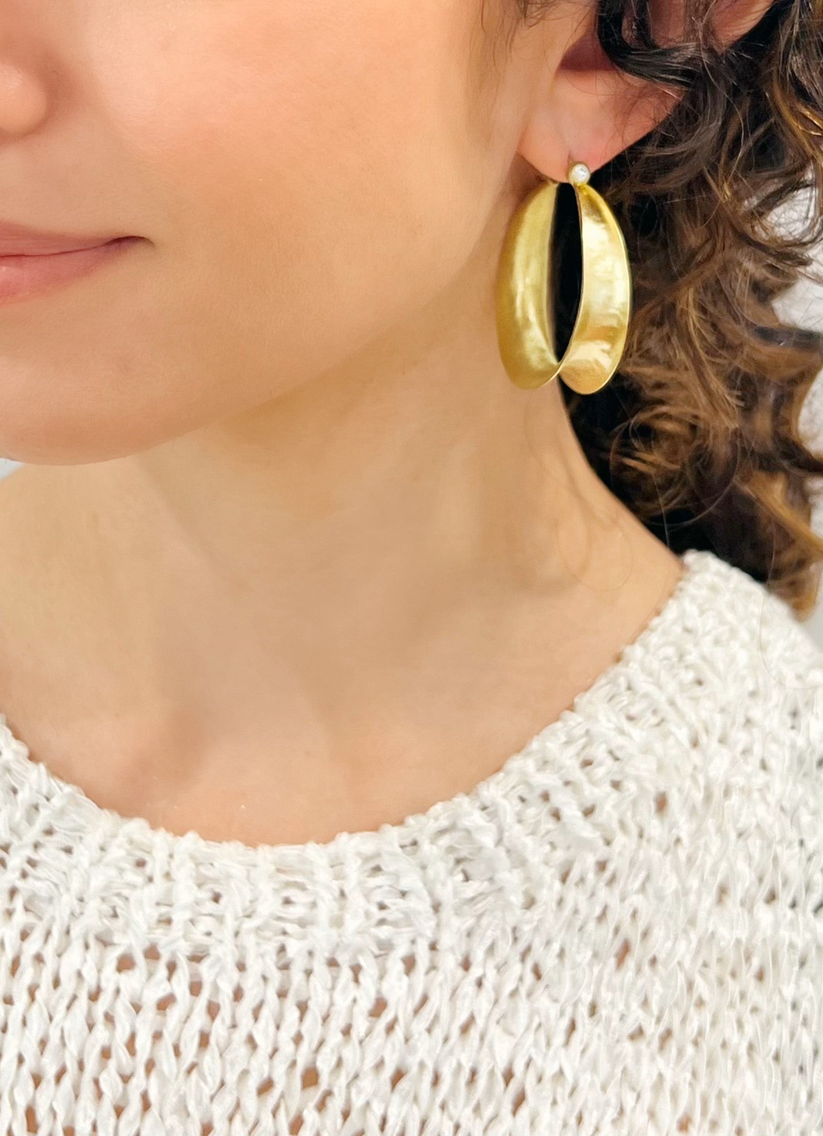 18 Karat Gold Anticlastic Diamond Hoops - Large