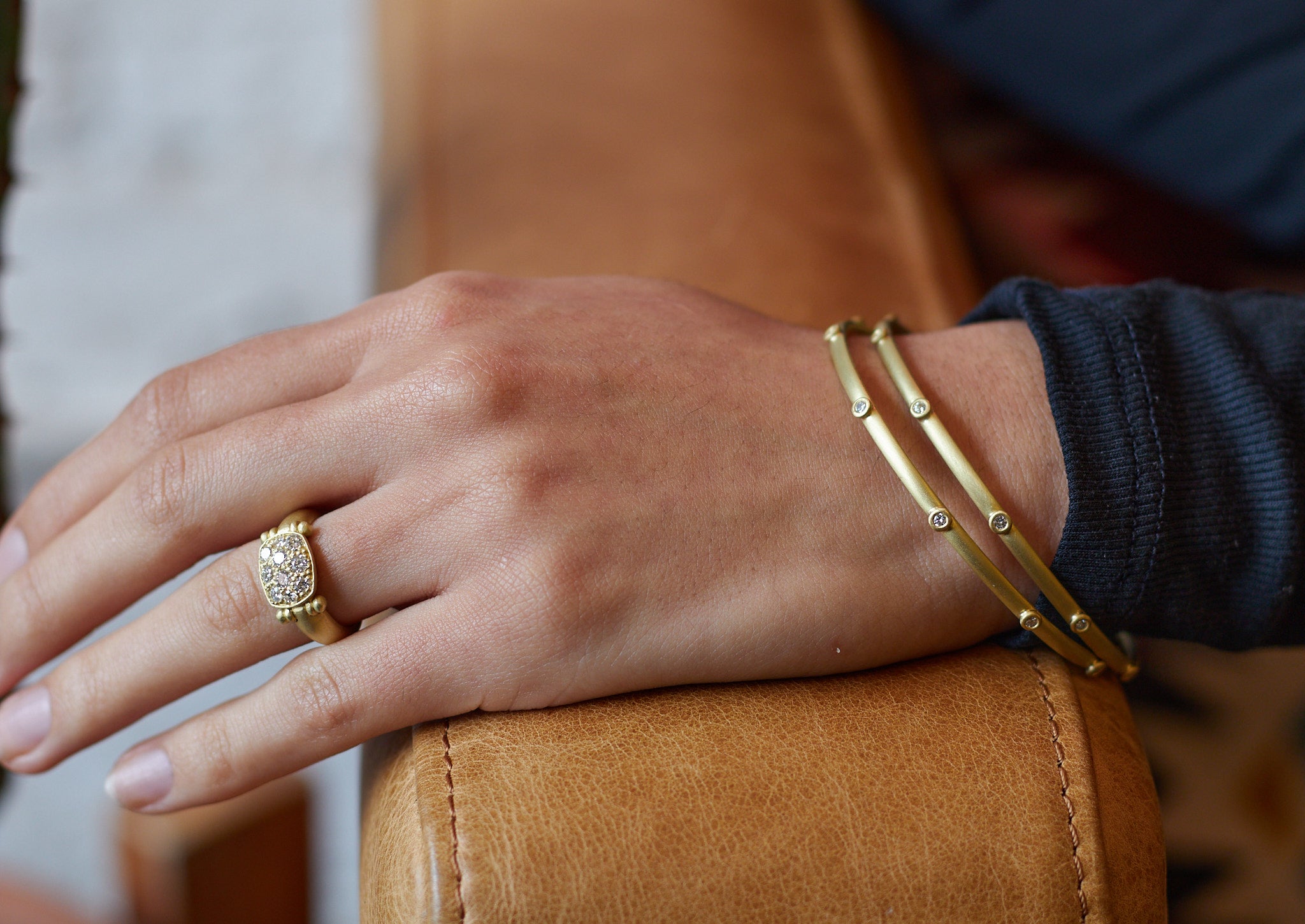 18k Gold Diamond Granulation Bead Bangle
