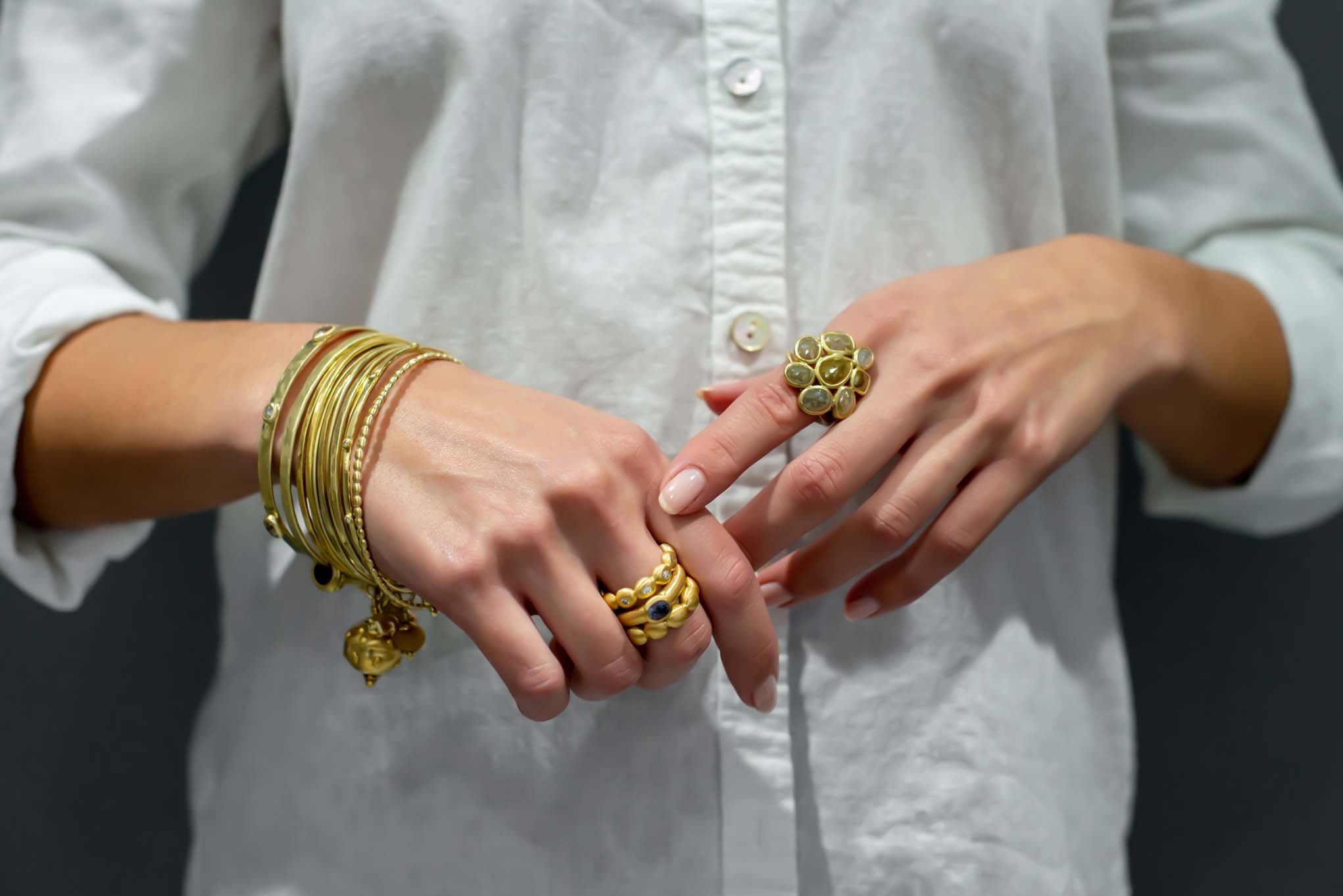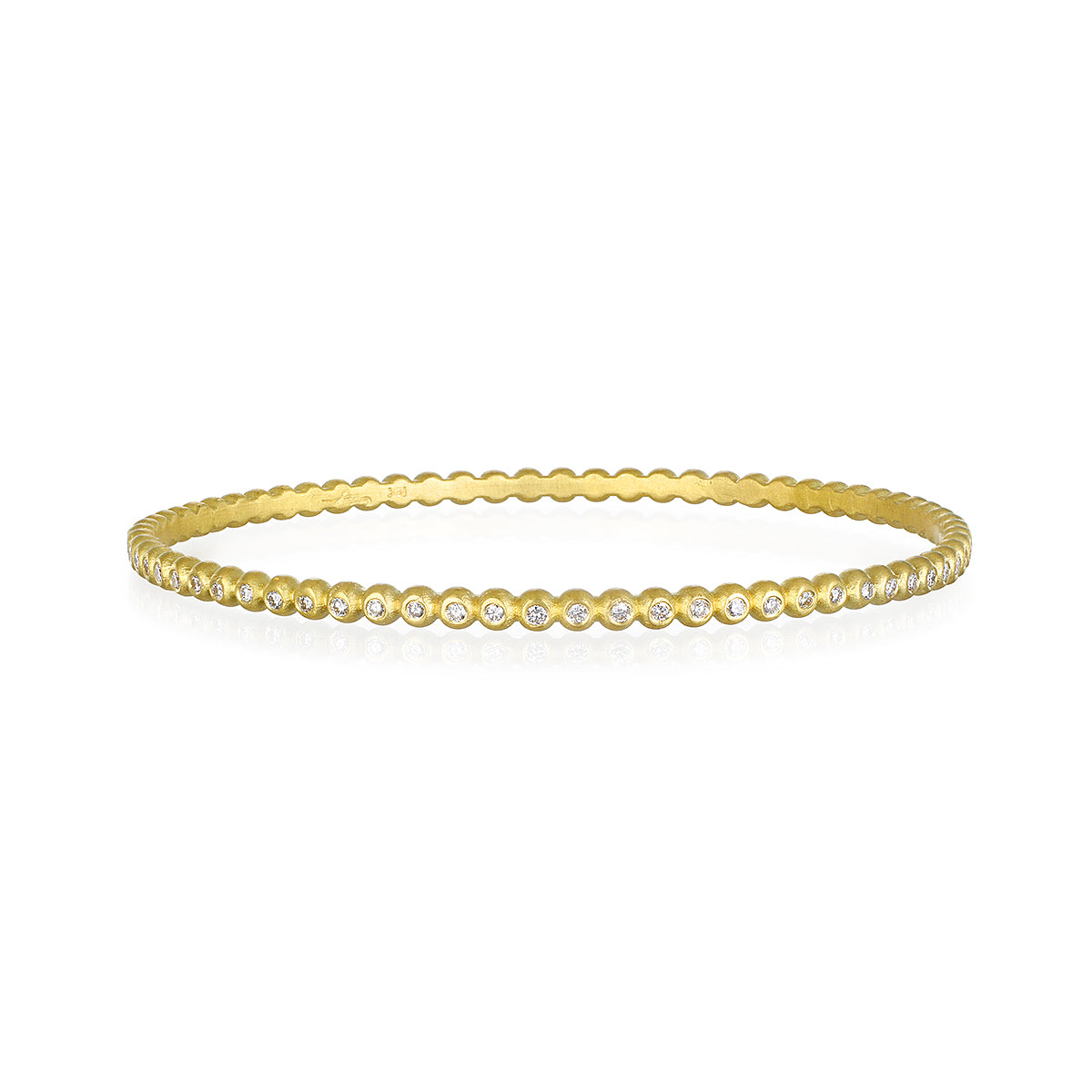 18 Karat Gold Burnished Diamond Granulation Bead Bangle