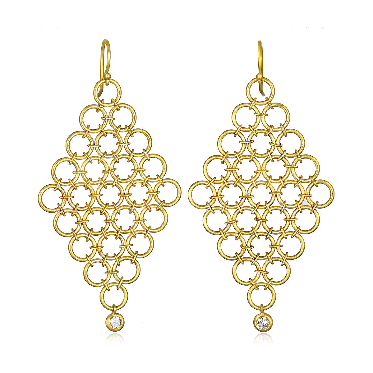 18k gold Diamond mesh earrings on French ear wires with Diamond drops