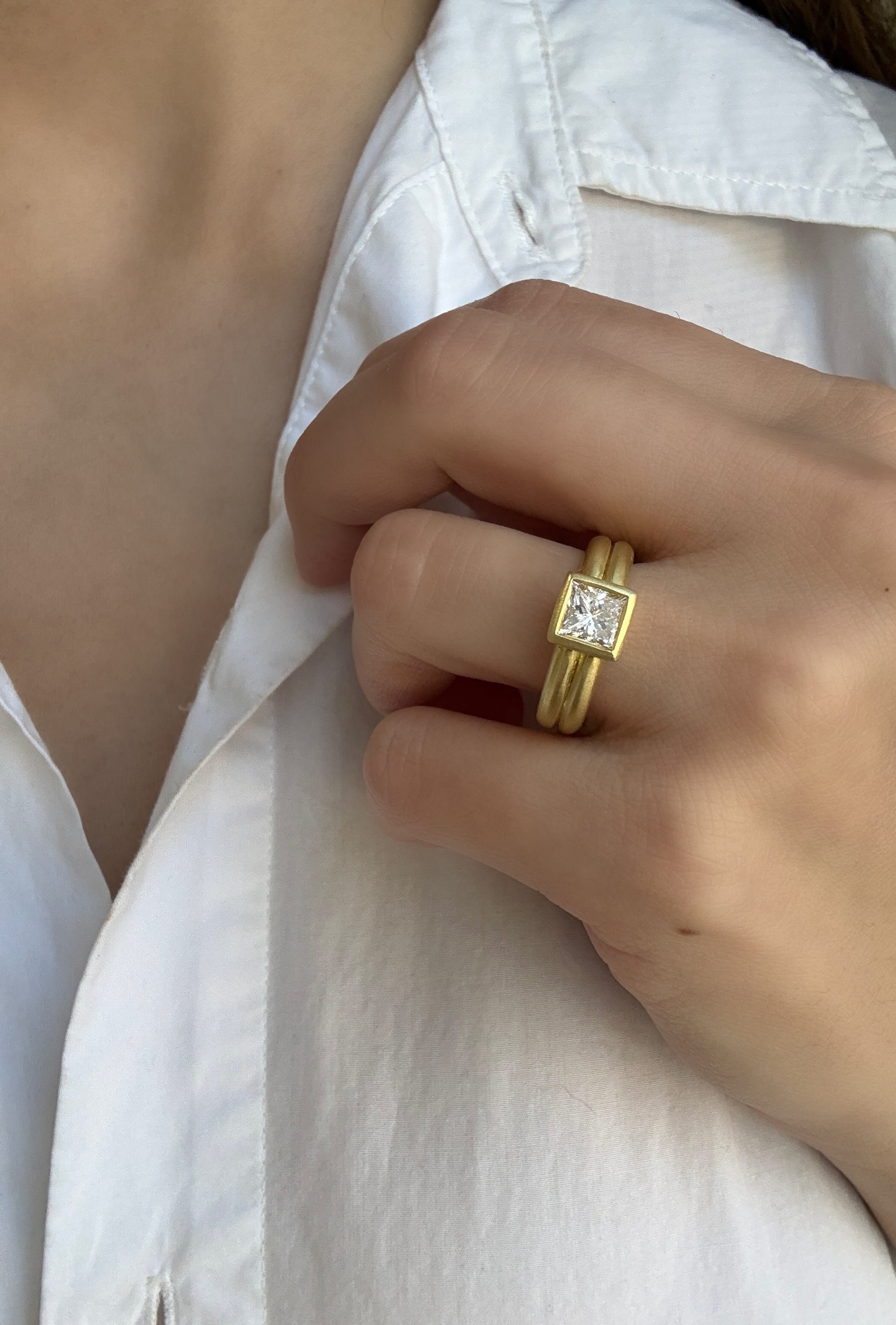 18 Karat Gold Princess Cut Diamond Double Band Ring