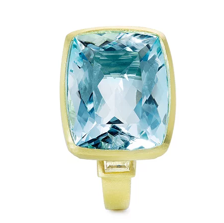 18 Karat Gold Aquamarine Open Bezel Ring
