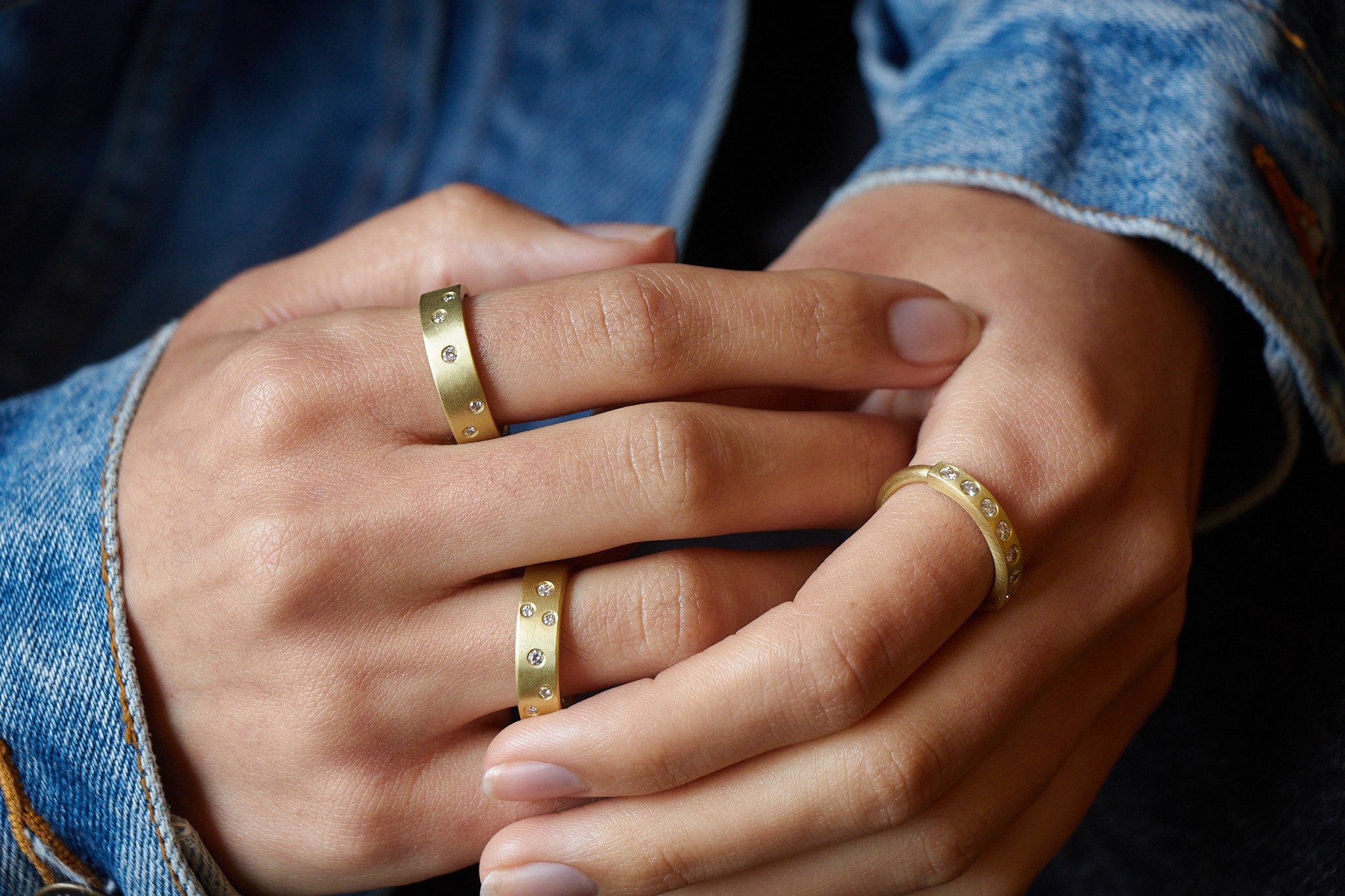 18k Gold Diamond Burnished Band Ring