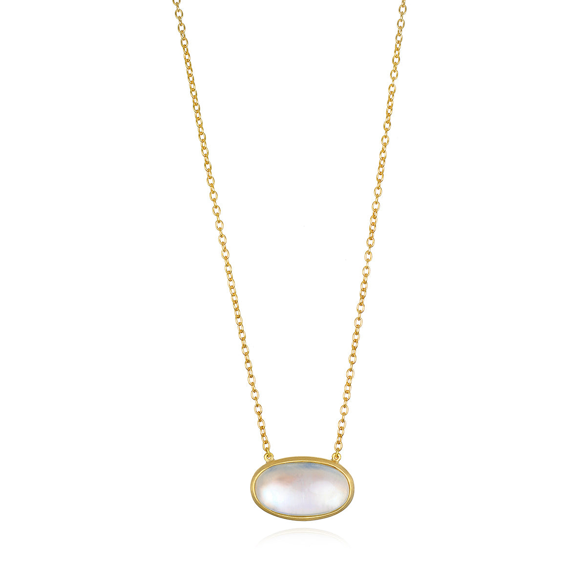 18 Karat Gold Oval Moonstone Bezel Necklace
