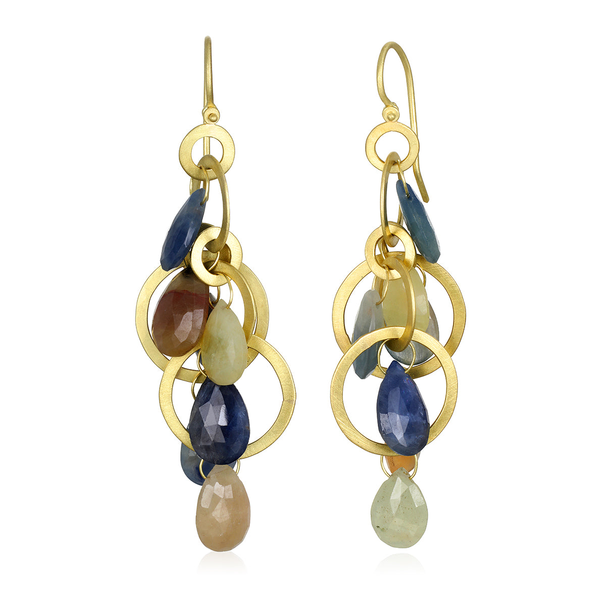18 Karat Gold Multi-Loop Umba Sapphire Briolette Earrings