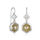 18 Karat White Gold Yellow-Green Milky Diamond Hinged Earrings