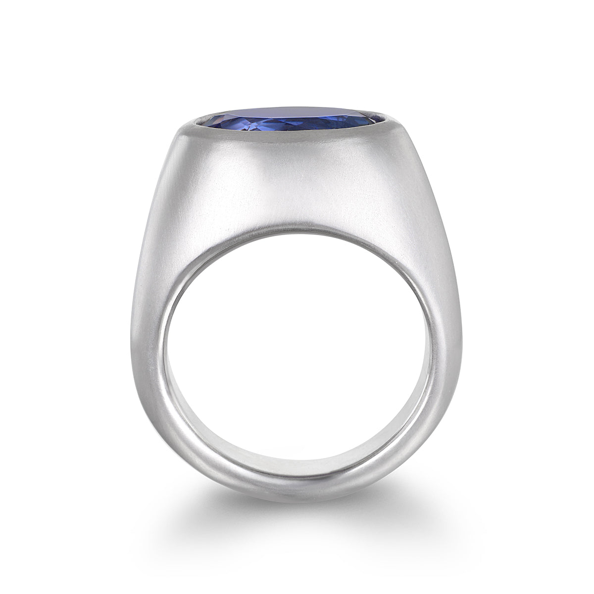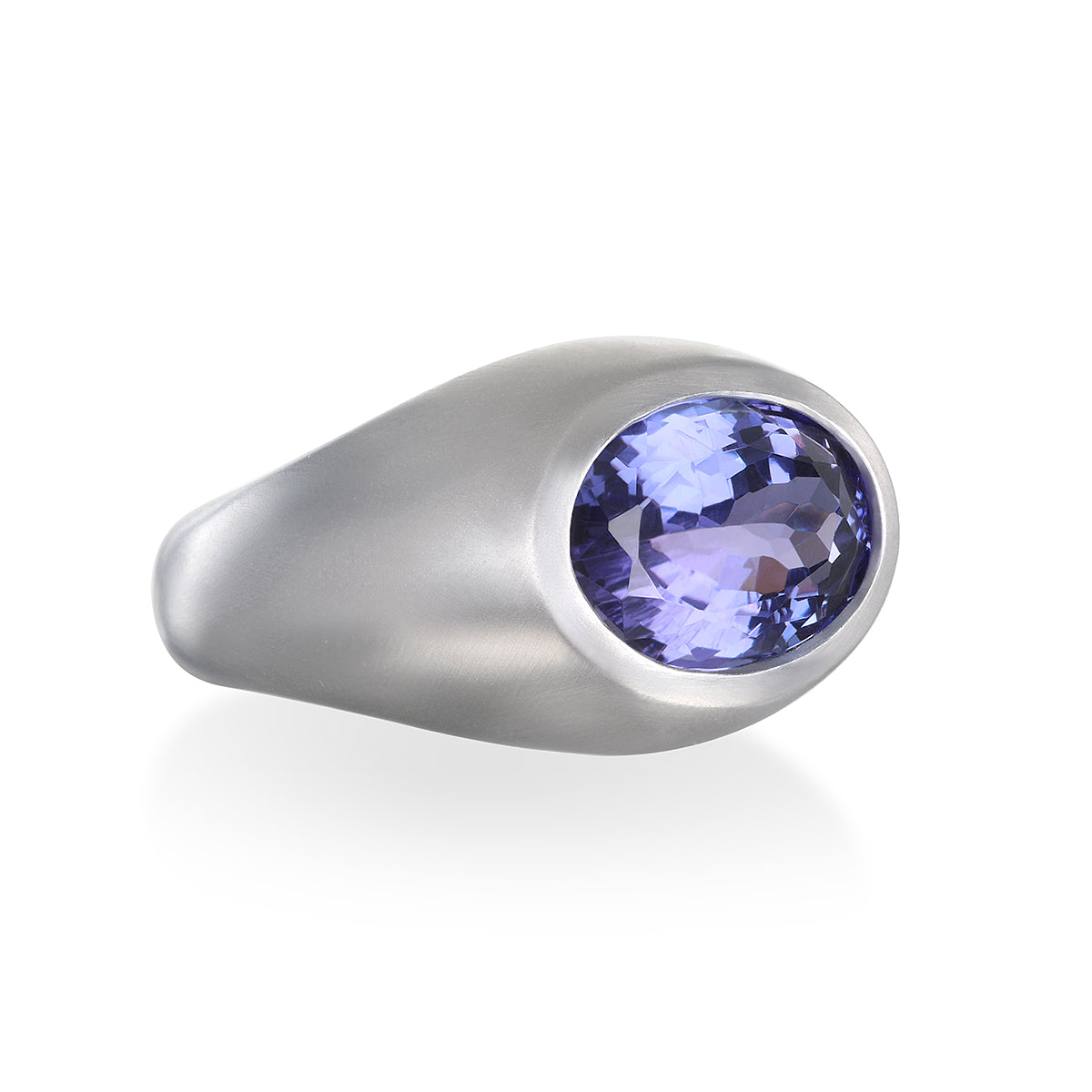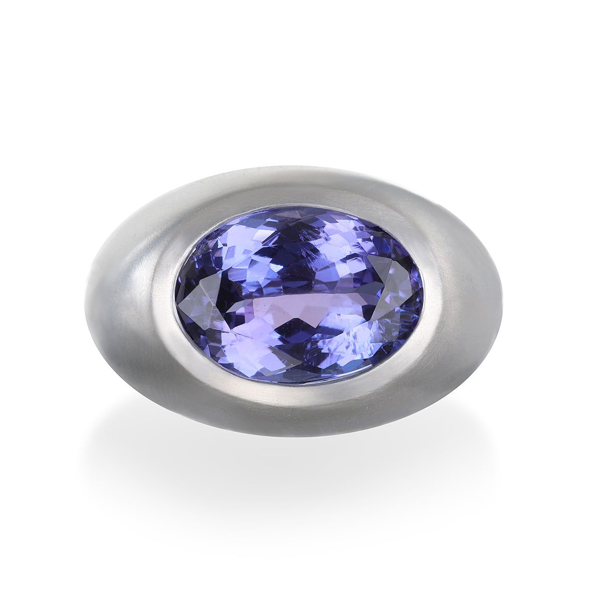 One-of-a-kind Platinum Faceted Oval Tanzanite Dome Ring