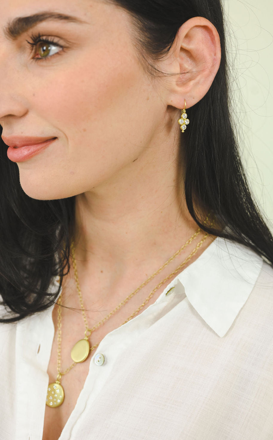 18k gold brilliant cut Diamond quad drop earrings with granulation bead drop detail