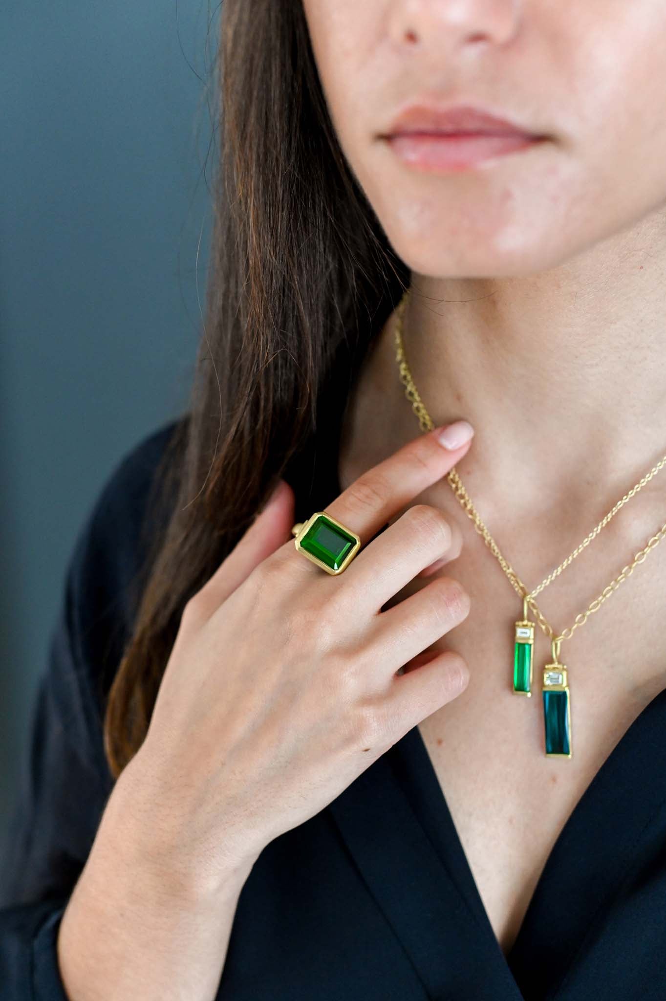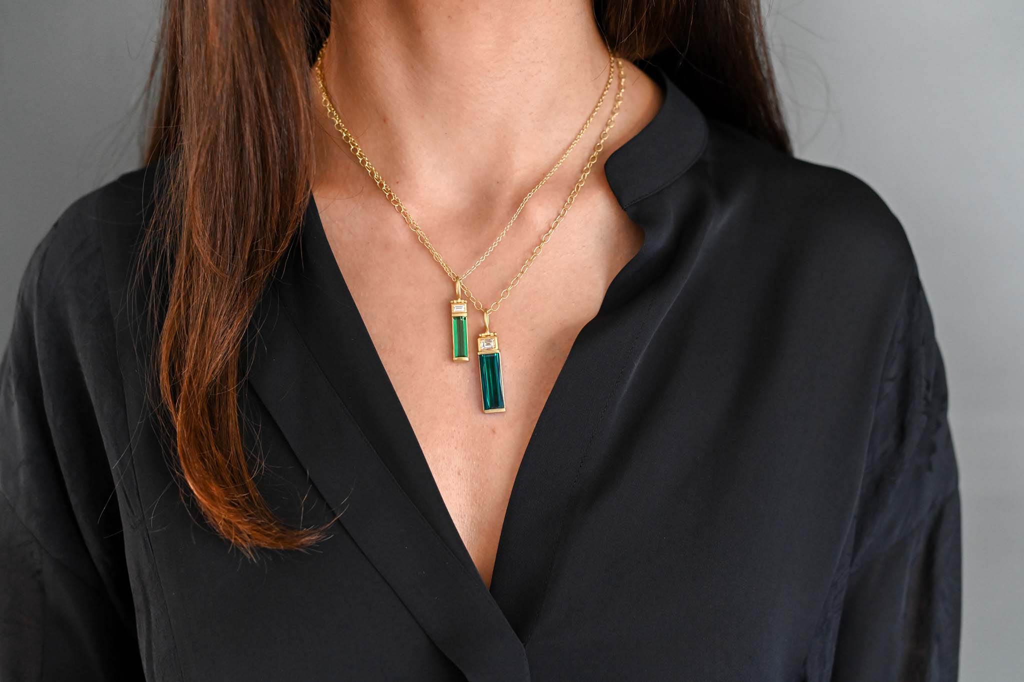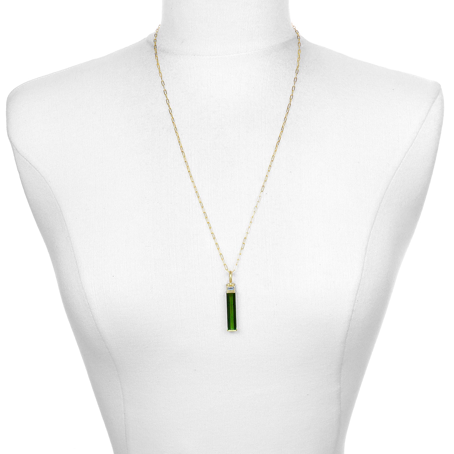 18k gold Chrome Tourmaline Bar Pendant with Diamond Baguette Hinge