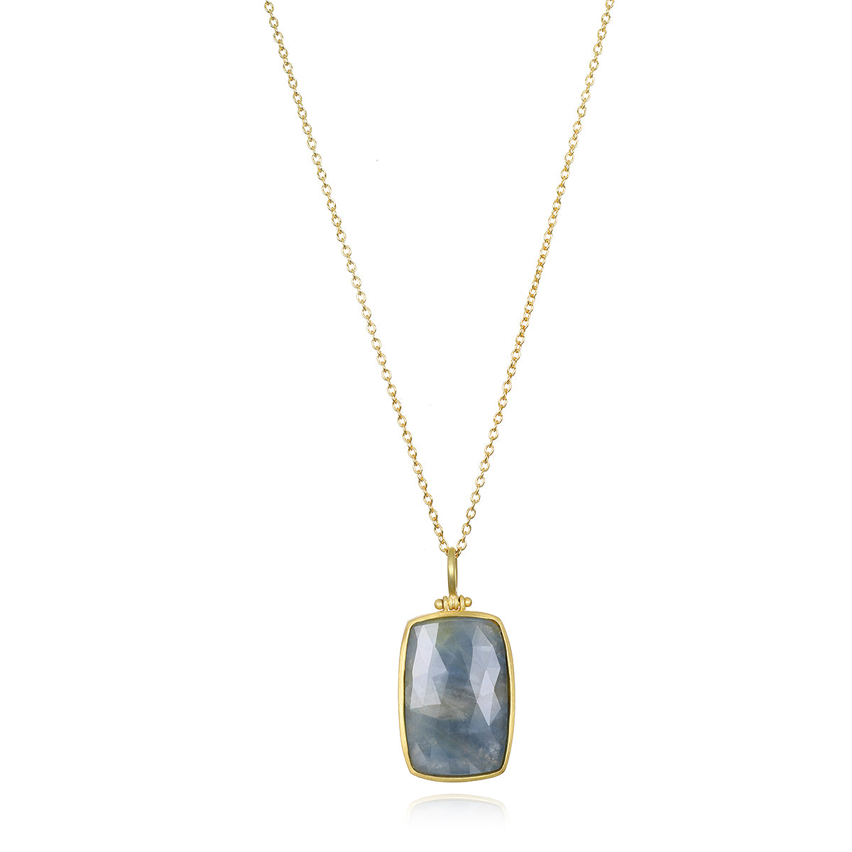 Modeled with 18k Gold Blue Sapphire Slice Hinged Pendant - 20.5 cts, sold separately